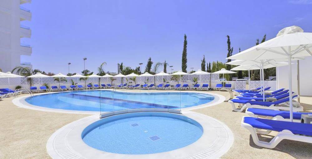 Sun n Blue Boutique Hotel entertainment comes in the form of outdoor and indoor swimming pools, steam rooms, a full daily animation programme and a range of thrilling water sports. The hotel offers guests the use of a fitness centre, where relaxing massages can be booked by appointment, or you can enjoy a spot of sun worshipping by the hotel’s sparkling outdoor swimming pools. Dining is taken in one of two restaurants – Hydros Blue, which offers Cypriot, Mediterranean, British and international cuisine, and Oinomelo Restaurant which serves delicious local and Greek dishes. After dinner, take a short walk to Ayia Napa Square, or enjoy a signature cocktail or Cypriot beer at Aura Bar or Nereides Pool Bar.